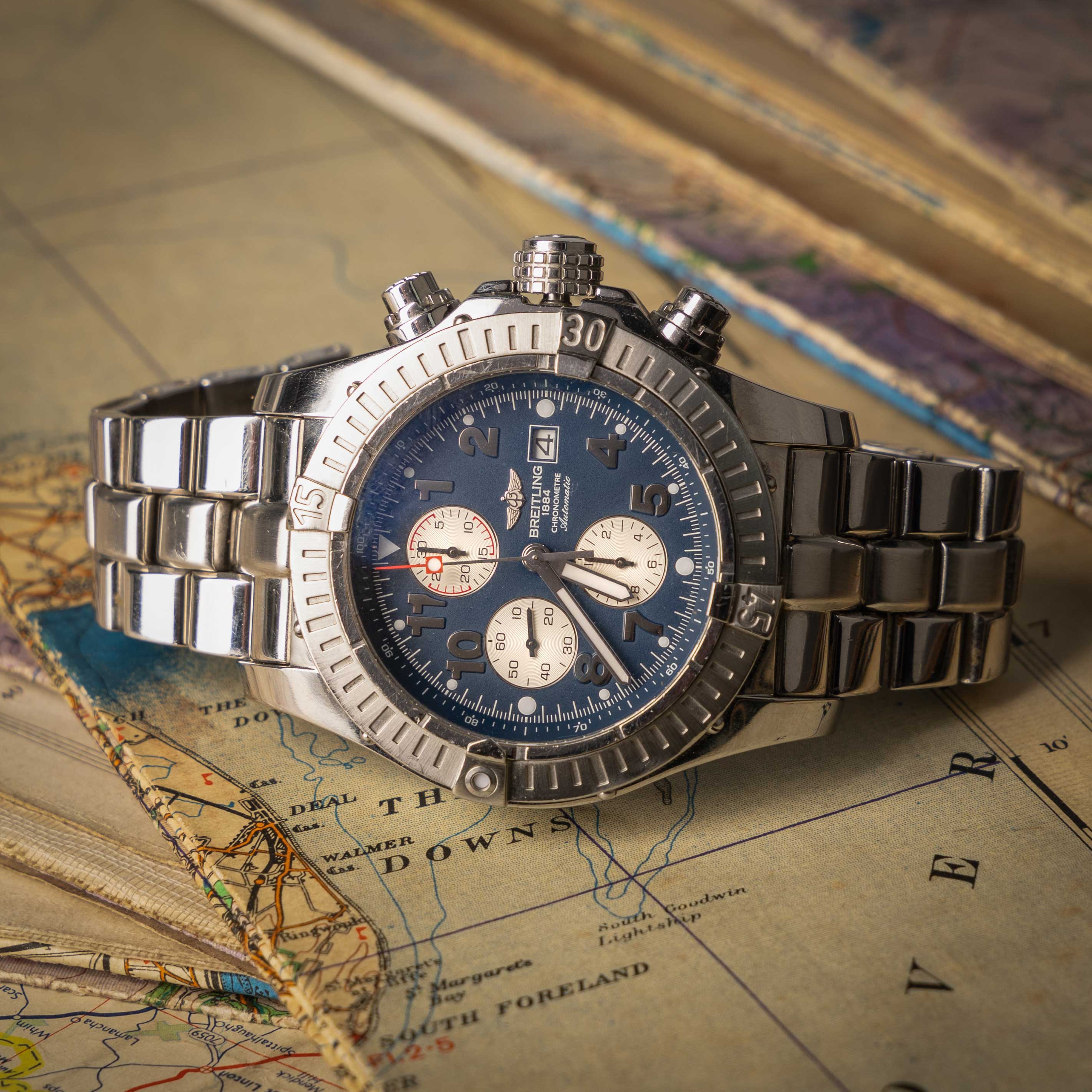 Lot 814 - BREITLING SUPER AVENGER, A13370, STAINLESS STEEL CHRONOGRAPH WRIST WATCH