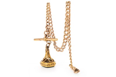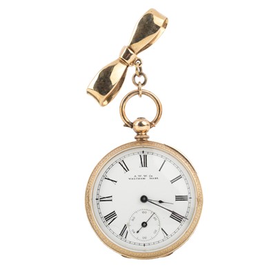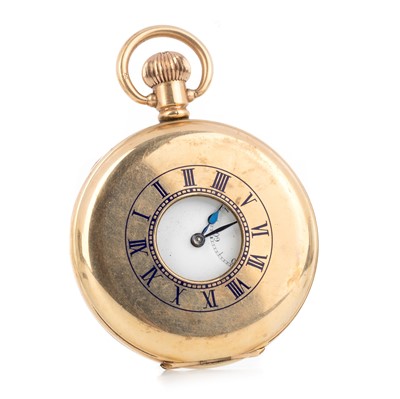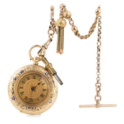 Lot 847 - FOURTEEN CARAT GOLD ENAMELLED FOB WATCH WITH ALBERTINA