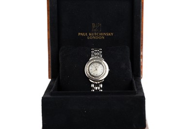 Lot 856 - PAUL KUTCHINSKY STAINLESS STEEL AND DIAMOND SET QUARTZ WRIST WATCH