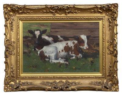 Lot 788 - DAVID GAULD RSA (SCOTTISH 1865 - 1936) TWO CALVES