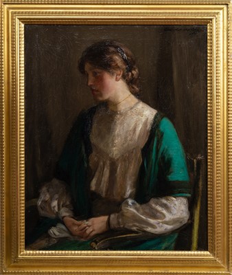 Lot 792 - ALEXANDER IGNATIUS ROCHE RSA NEAC RP (SCOTTISH 1863 - 1921) PORTRAIT OF A LADY IN GREEN