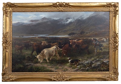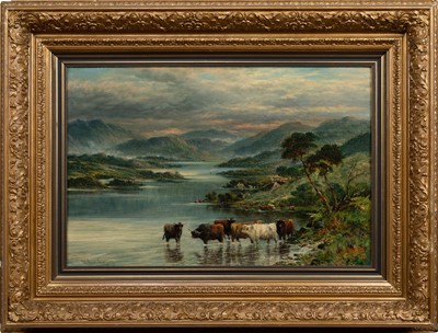 Lot 810 - WILLIAM LANGLEY (BRITISH 1880 - 1920) HIGHLAND CATTLE WATERING