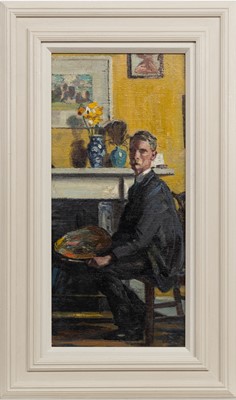 Lot 812 - THOMAS CORSAN MORTON (SCOTTISH 1859 - 1928) SELF PORTRAIT WITH PAINT PALETTE