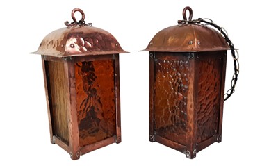 Lot 456 - PAIR OF ARTS & CRAFTS COPPER HALL LANTERNS