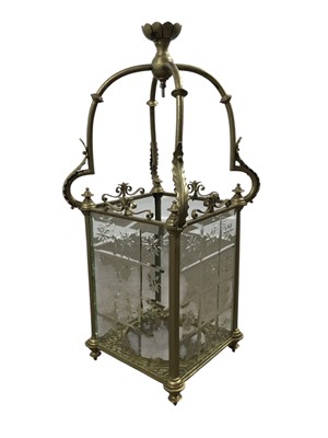 Lot 486 - VICTORIAN BRASS HANGING LANTERN LIGHT SHADE