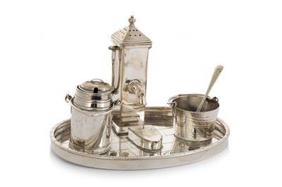 Lot 510 - VICTORIAN SILVER PLATED CRUET SET CIRCA 1870