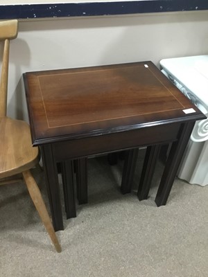 Lot 262 - A MAHOGANY NEST OF THREE TABLES AND AN OAK TWO TIER OCCASIONAL TABLE
