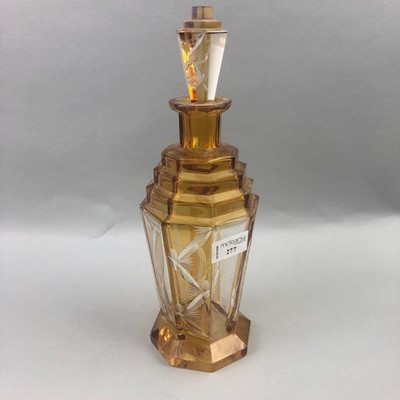 Lot 277 - AN ART DECO AMBER FLASHED SPIRIT DECANTER AND STOPPER