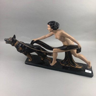 Lot 282 - AN ART DECO STYLE PLASTER FIGURE GROUP OF A NUDE FEMALE AND AN ALSATION