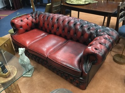 Lot 284 - AN OXBLOOD LEATHER BUTTONED THREE SEAT SOFA
