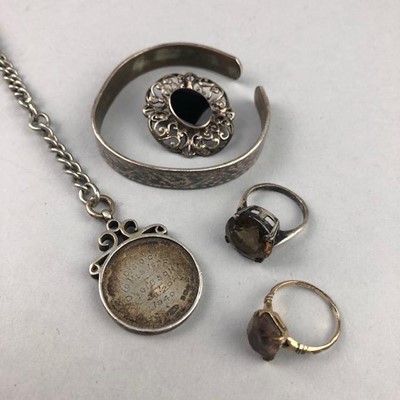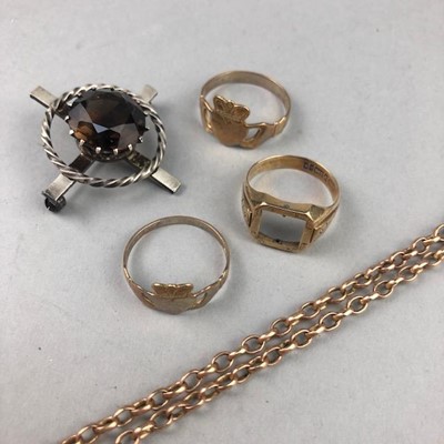 Lot 219 - A LOT OF THREE GOLD GENTLEMEN'S RINGS, GOLD NECKLACE AND SILVER BROOCH