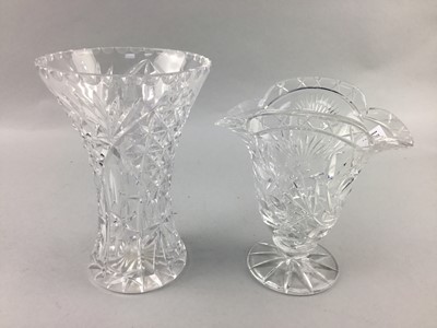 Lot 227 - A LOT OF CUT GLASS VASES AND A PERFUME BOTTLE
