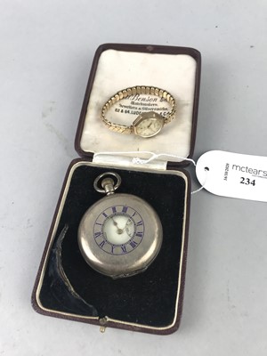 Lot 234 - A LADY'S ZODIAC GOLD CASED WRIST WATCH AND A POCKET WATCH