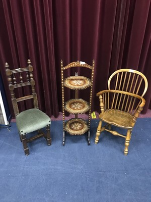 Lot 240 - A CHILDRENS WINDSOR CHAIR ALONG WITH ANOTHER AND A CAKE STAND