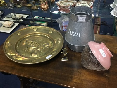 Lot 254 - AN ART DECO VASE, BRASS CHARGER, AND OTHER ITEMS