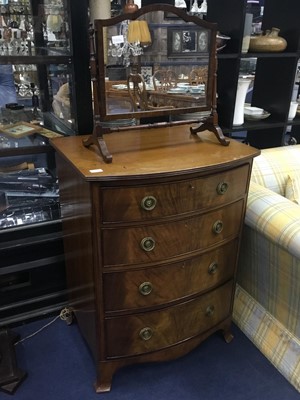 Lot 324 - A REPRODUCTION MAHOGANY BOW FRONTED CHEST OF THREE DRAWERS