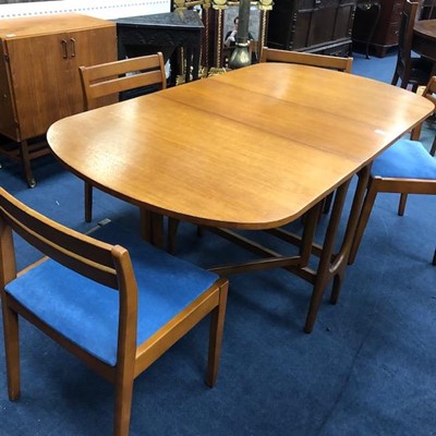Lot 321 - A 20TH CENTURY DINING TABLE, FOUR CHAIRS AND A TWO DOOR CUPBOARD