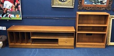 Lot 318 - A RETRO TEAK MUSIC CABINET AND AN OPEN BOOKCASE
