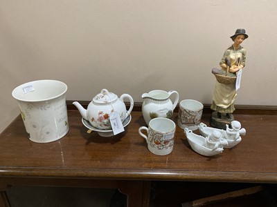 Lot 285 - A WORCESTER AESTHETIC TEAPOT ALONG WITH OTHER CERAMICS