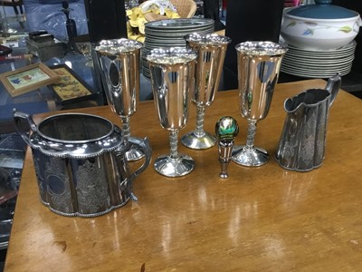 Lot 286 - A SET OF FOUR SILVER PLATED GOBLETS ALONG WITH OTHER SILVER PLATED WARE
