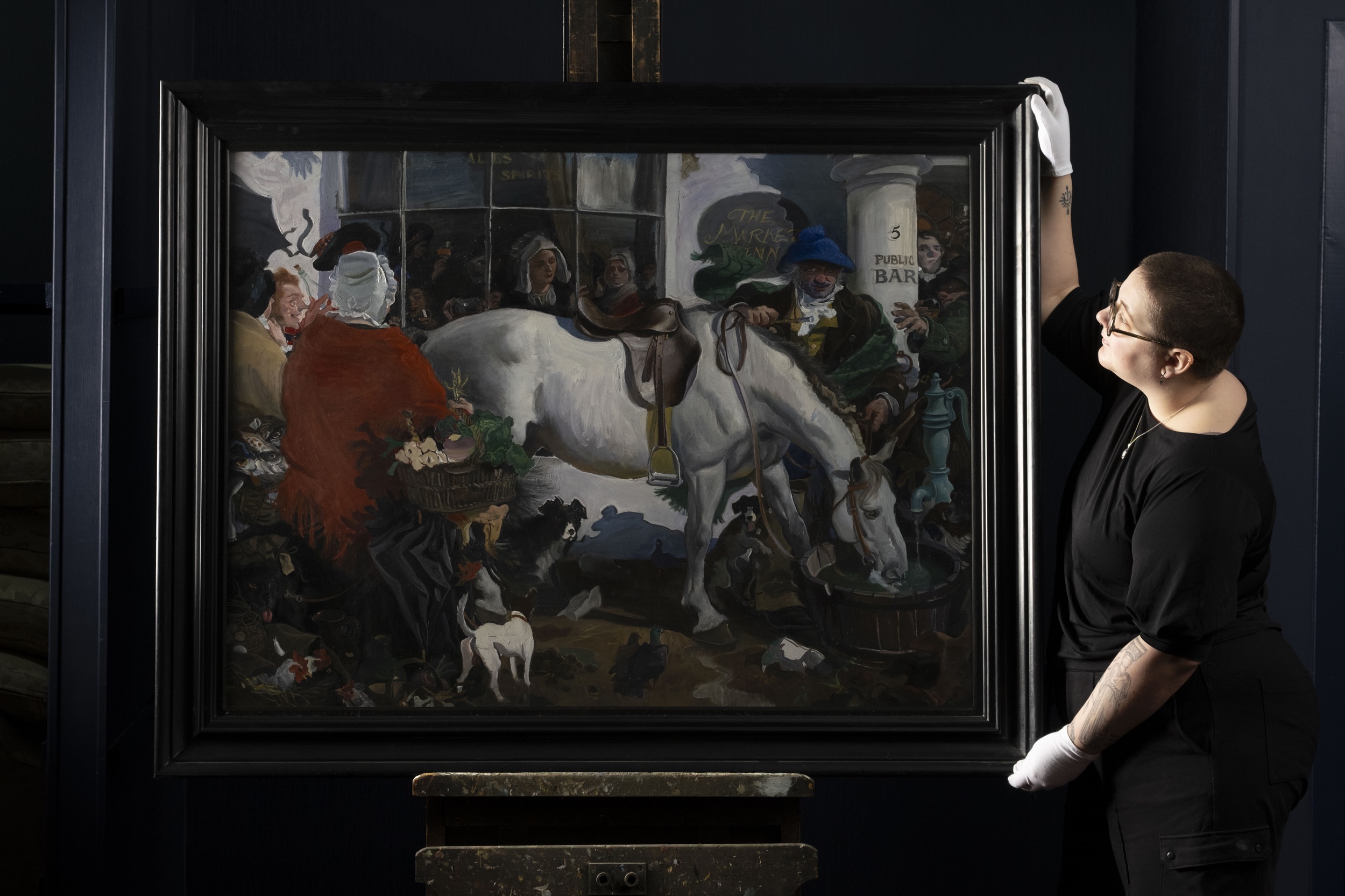 Alexander Goudie’s son, Lachlan Goudie, is the leading authority on his father’s work. Commenting on the auction, the acclaimed artist, author and broadcaster - who wrote and presented the landmark BBC television series ‘The Story of Scottish Art’ – said: “I think The First Drink shows my father working at the peak of his powers. It contains fully fleshed out characters, like Tam and Souter Johnnie, which my father had developed through a series of earlier works.